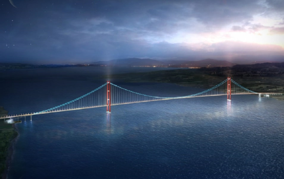 - Toplam uzunluğu 3,6 km olan ve 2023 m ile dünyanın en uzun ana açıklıklığına sahip asma köprüsü